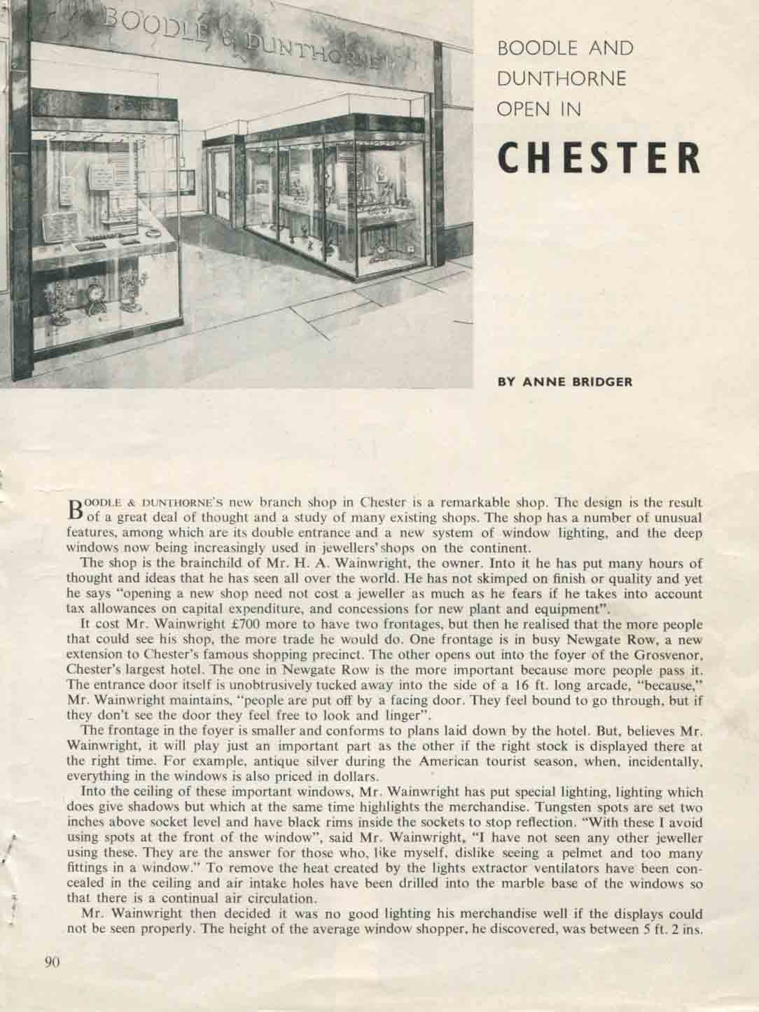 When the Grosvenor Precinct first opened in the mid-1960s, Boodles was among its most exciting arrivals. In 1966, The Boodles Gem proudly reported that more than £500,000 of treasures – from magical gemstones to silver, gold and rare watches – were displayed to mark the opening of the new showroom. It was described as one of the finest jewellery showrooms outside London, with Italian marbles, rich timbers and glass imparting an air of luxury to the open-plan design.