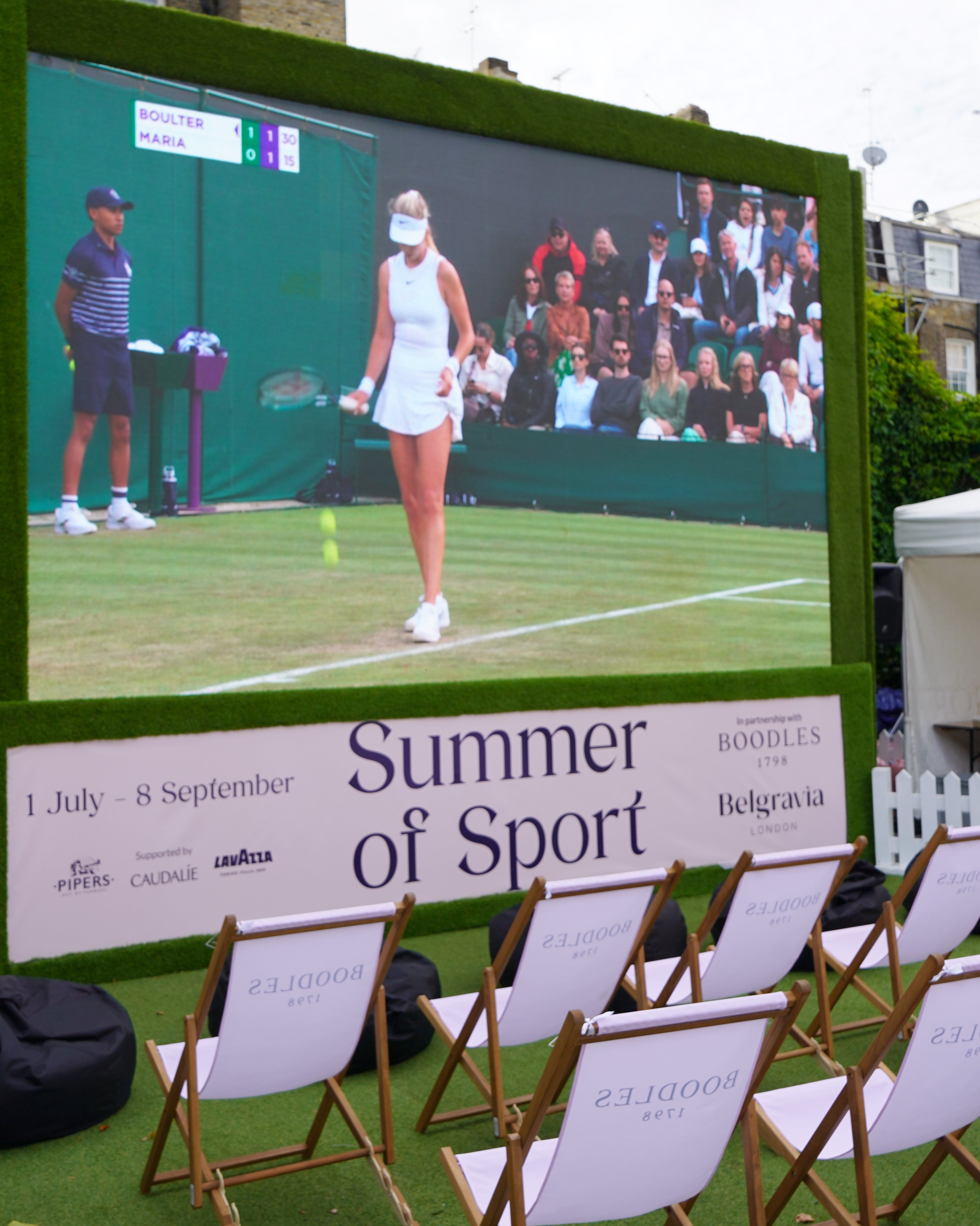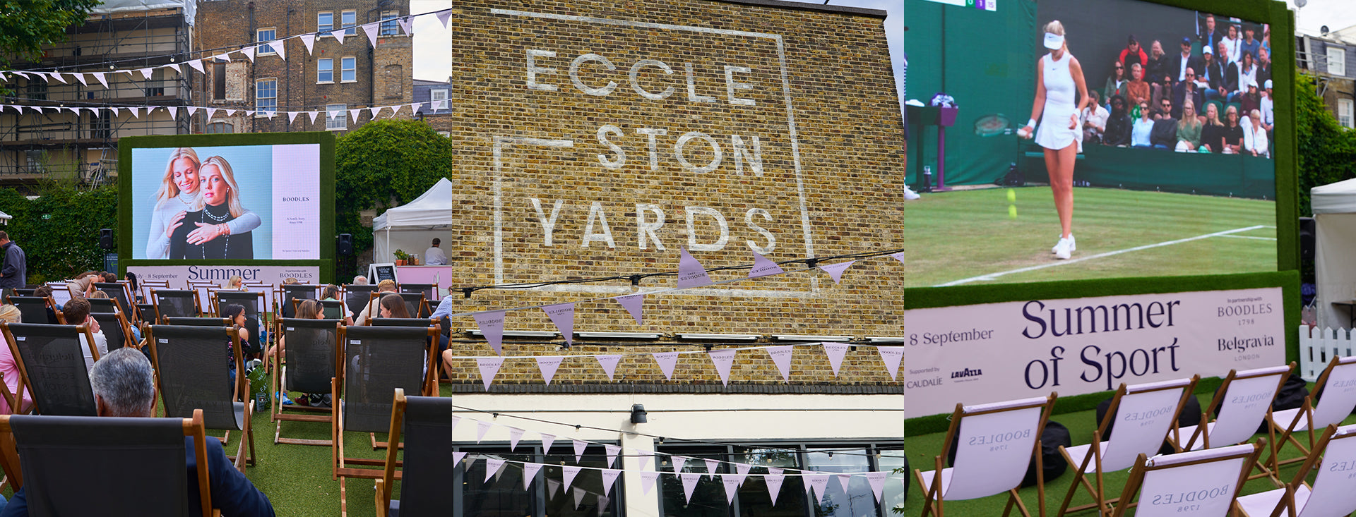 Watch open-air live screenings of this summer's sporting action in a beautiful Belgravia courtyard, a picturesque suntrap just moments from Victoria Station and the Boodles Sloane Street showroom.