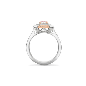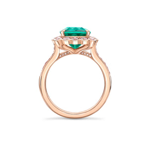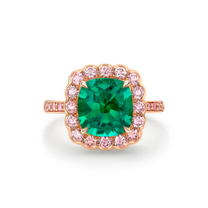 Scalloped Cushion Emerald and Pink Diamond Rose Gold Ring