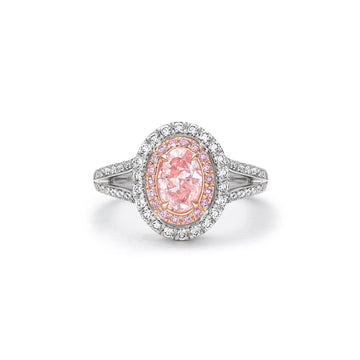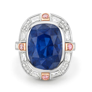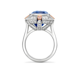 Pavilion Sapphire and Pink Diamond Platinum Ring