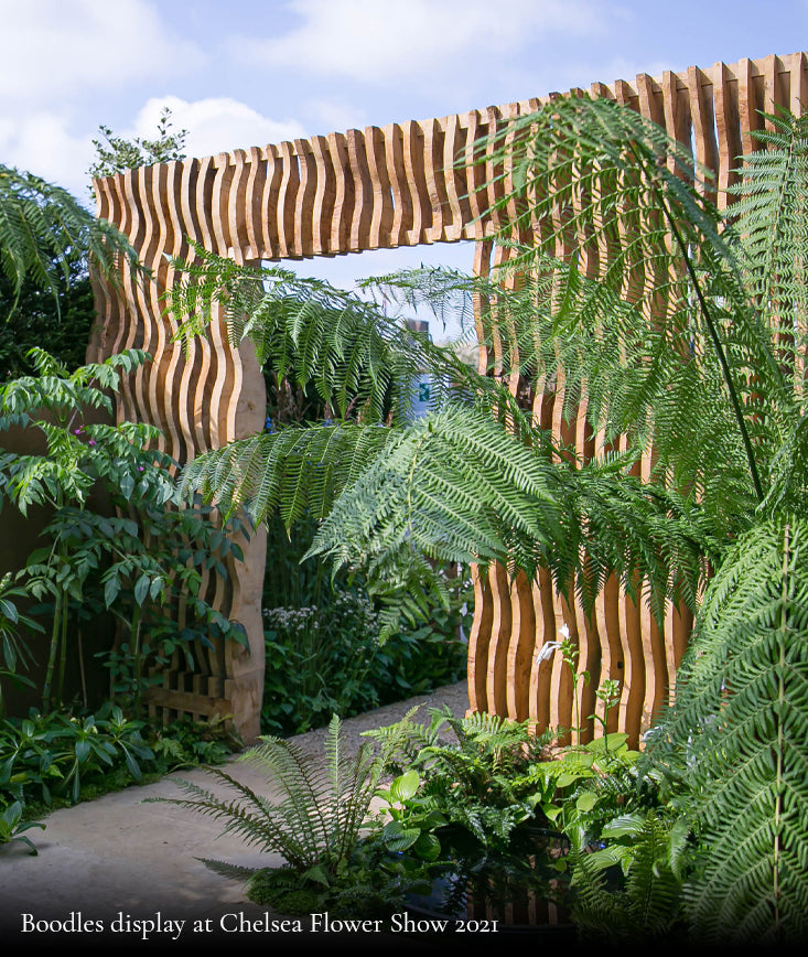During the renovations of our Sloane Street showroom we opted to create a large wall using repurposed wood in our Garden Room. This wood originates from an oak tree, which was initially planted over 300 years ago and then felled as part of a major UK infrastructure project, meaning it has been entirely sustainably sourced. It was subsequently used by garden designer Tom Hoblyn and sculptor Jan Hendzel for the Boodles Secret Garden at the Chelsea Flower show in 2021. We like to think the tree has now entered its ‘third life’ at Boodles Sloane Street, only a few miles from where it was initially planted!