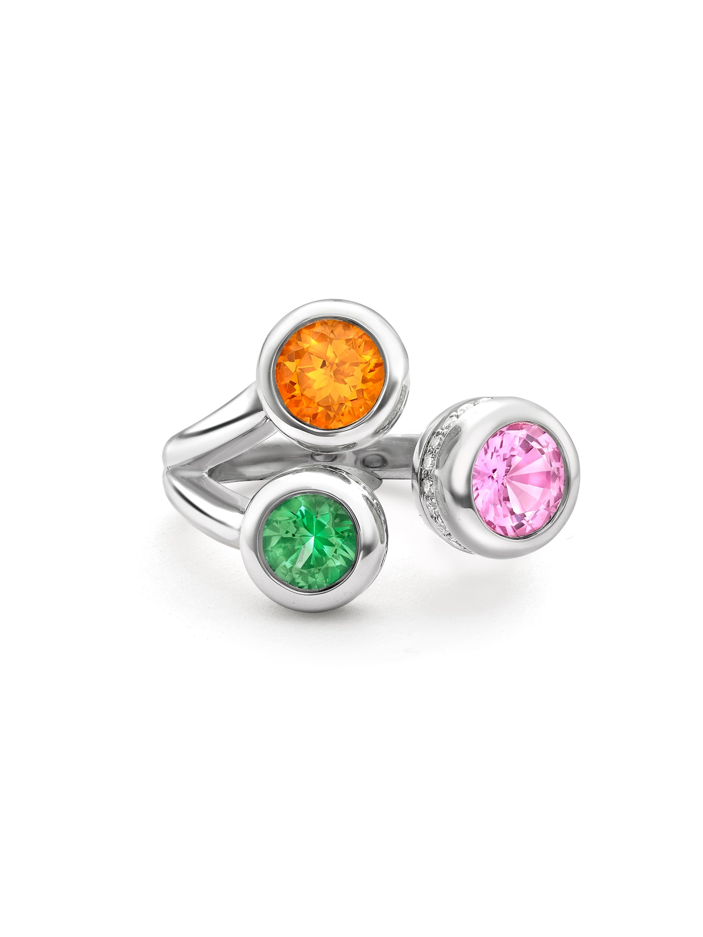 Beach Three Stone Sapphire Garnet Tsavorite Platinum Ring
