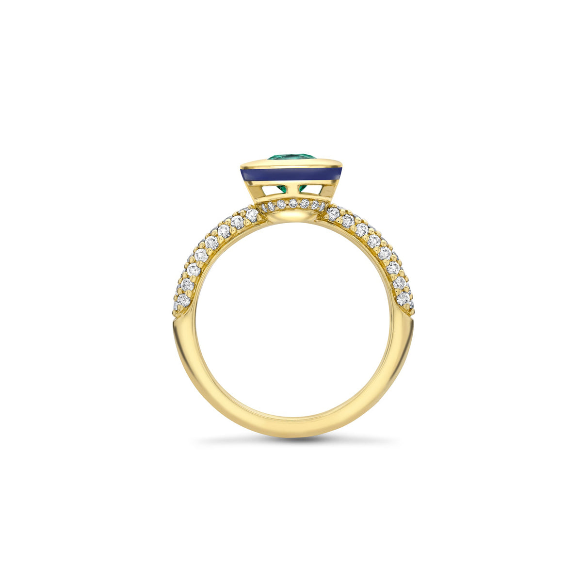 Florentine Cushion Emerald Yellow Gold Ring