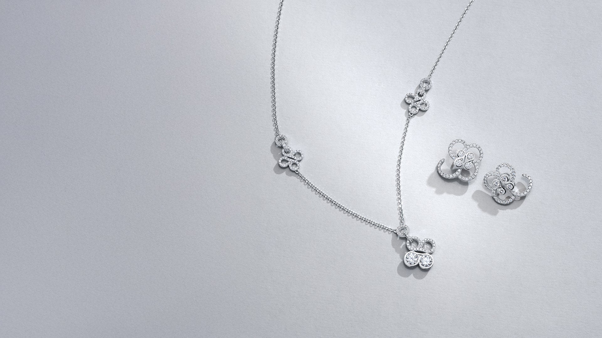Mirrored pairs of diamond-set B motifs illustrate the delicate balance between sheer and opaque, imitating the curving lines of the antique lace.