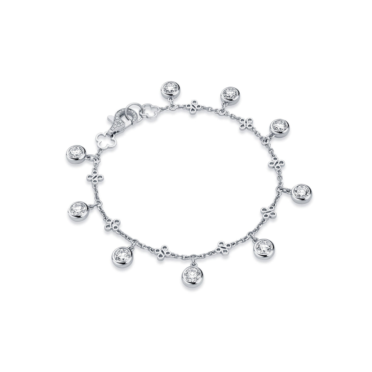 From the Boodles Beach collection comes a diamond and platinum bracelet, designed as the perfect accompaniment for days in the sun and sand. Set with a total of 9 white round-brilliant cut diamonds, and a combined weight of 4.51 carats approximately, this bright and vibrant piece is the perfect accessory to take you from sandy days to sundowners.