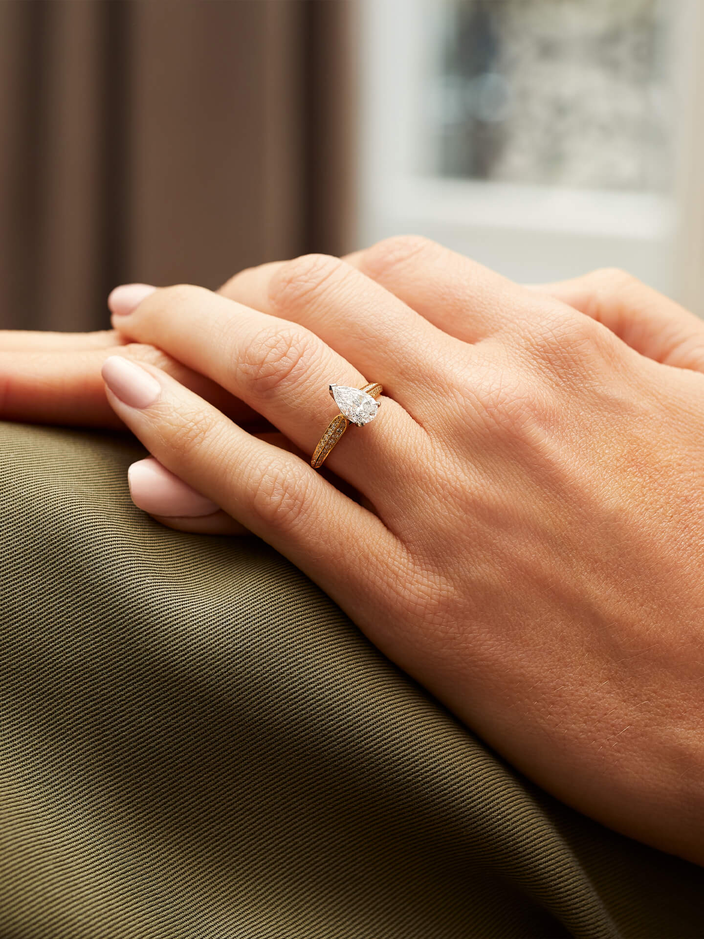 Petal Pear Cut Yellow Gold Diamond Engagement Ring