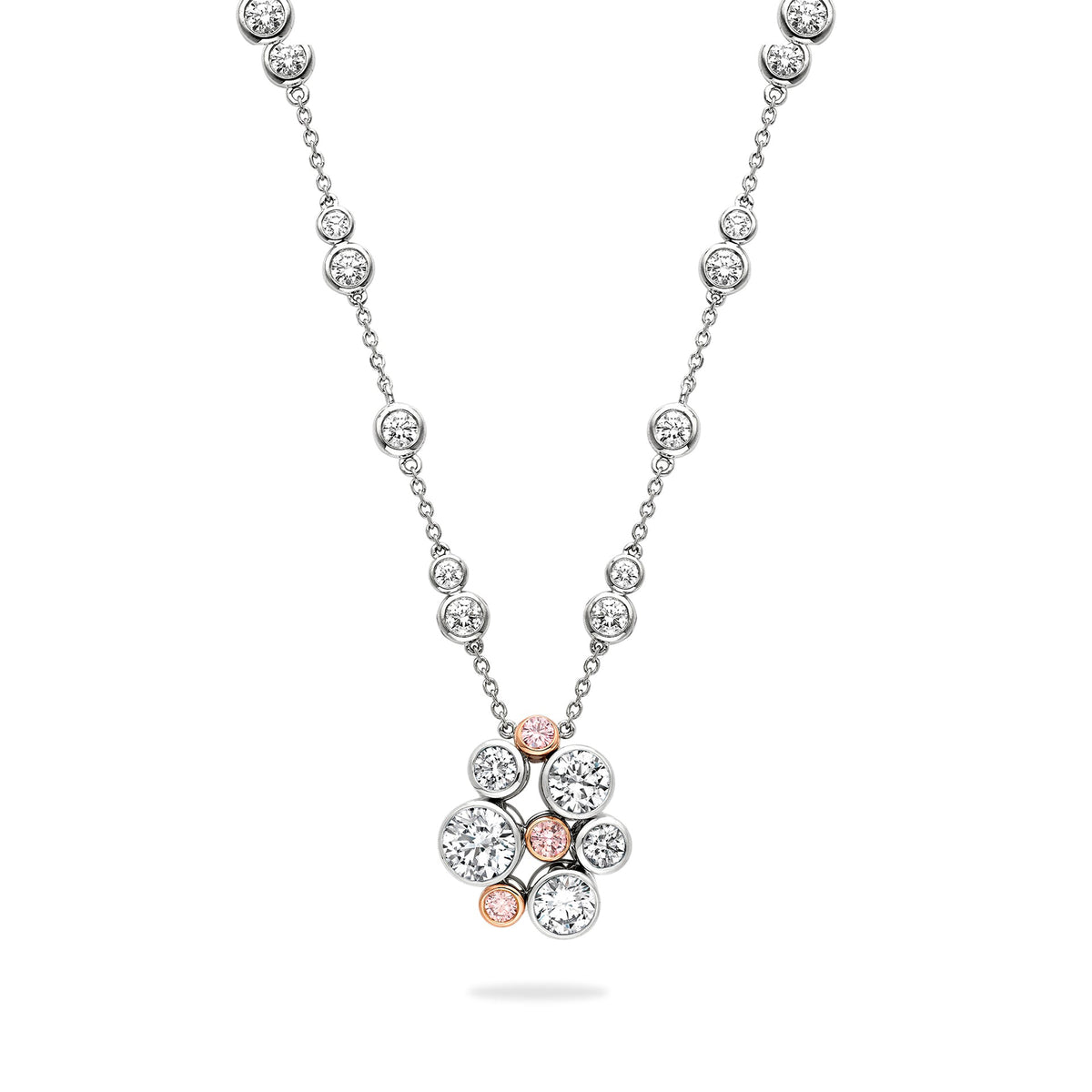 Raindance Platinum Pink and White Diamond Cluster Pendant