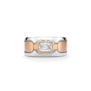 ‘Manhattan’ design ring set with an Ashoka cut diamond in 18 carat Single Mine Origin white and pink gold