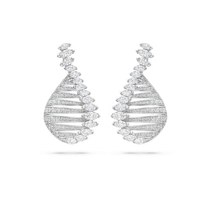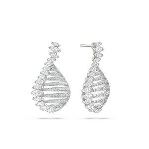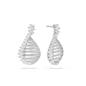 Water features cascade through the garden, inspired by the tranquil scenes of Gallen-Kallelaʼs ʻLake Keiteleʼ and the reflective waters in Monet’s ʻThe Museum at Le Havreʼ. These elements add a dynamic layer of serenity to the space and draw similarities to the ‘Play of Light’ marquise diamond earrings.