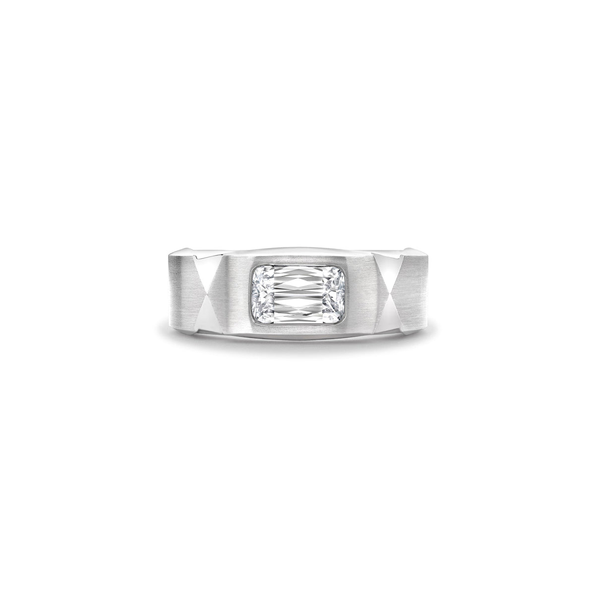 A Jazz design ring set with an Ashoka cut diamond in 18 carat Single Mine Origin white gold. The main Ashoka diamond is certificated 1.5 carats.