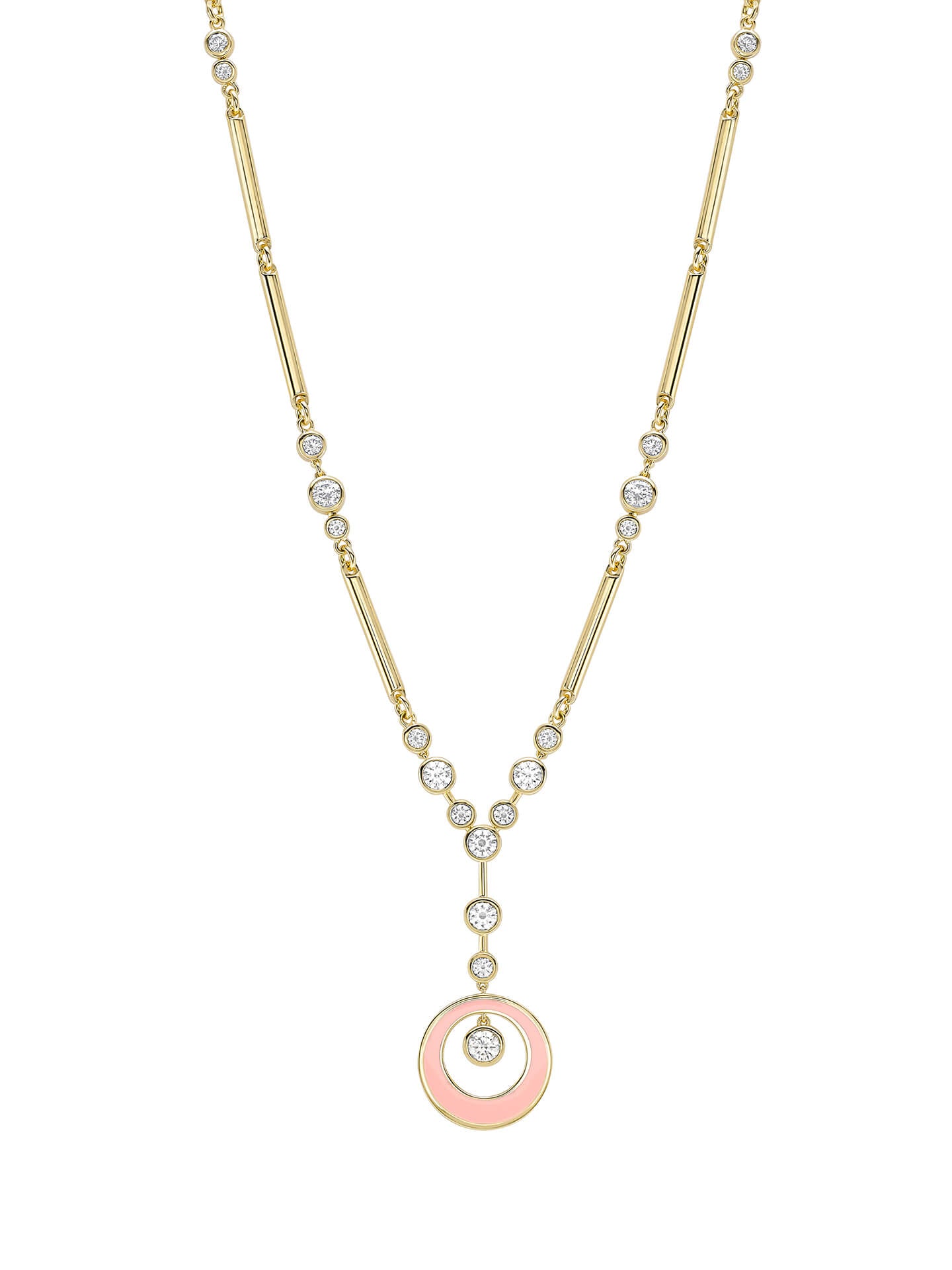 Raindance Diamond Pink Enamel Yellow Gold Pendant