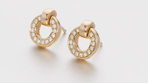 A versatile pair of earrings from Boodles Roulette collection. Taken from the French word for 'little wheel', these beautiful earrings can be worn in two ways to suit the wearer; diamond covered or a simple gold appearance on the reverse. The total diamond weight is approximately 0.23 carats.