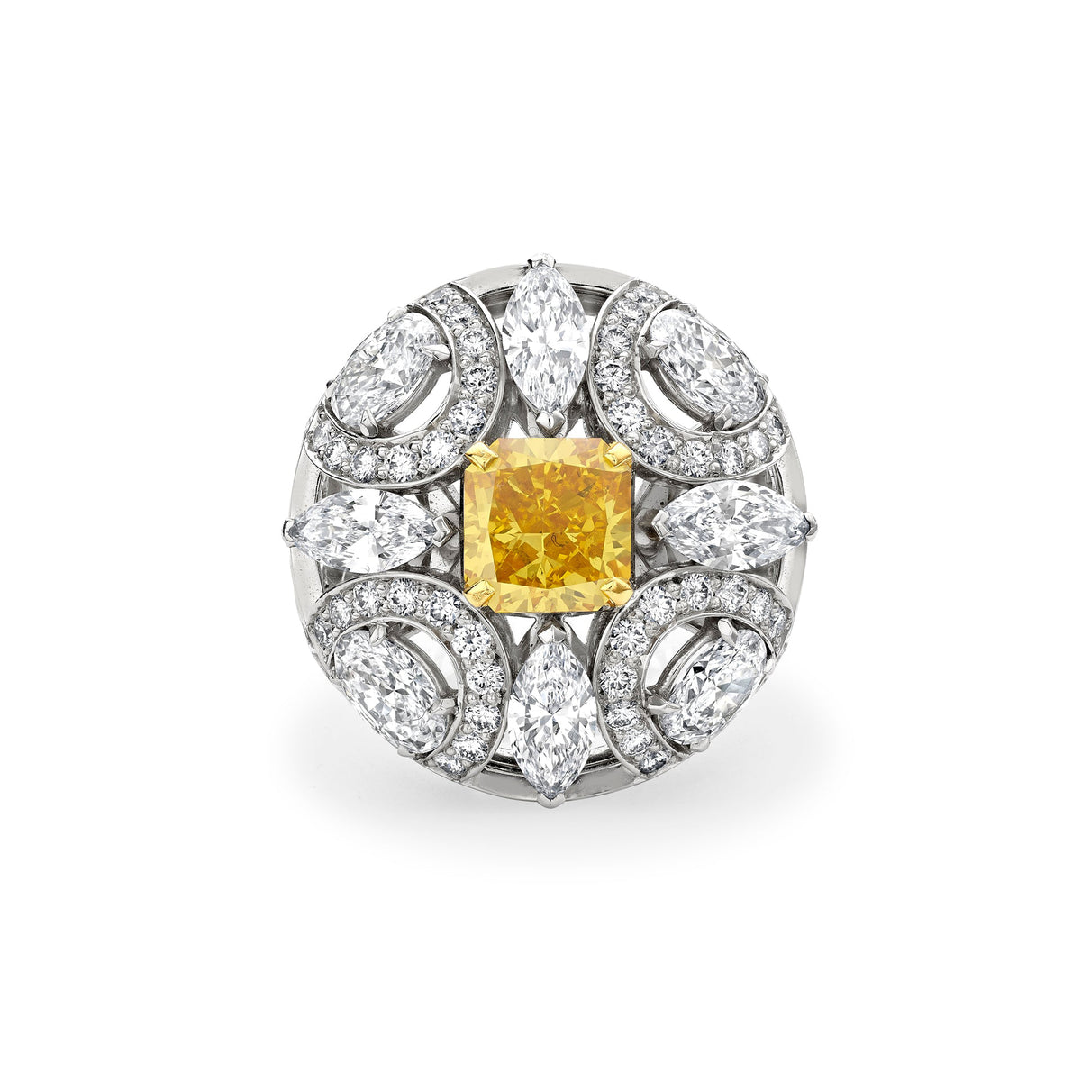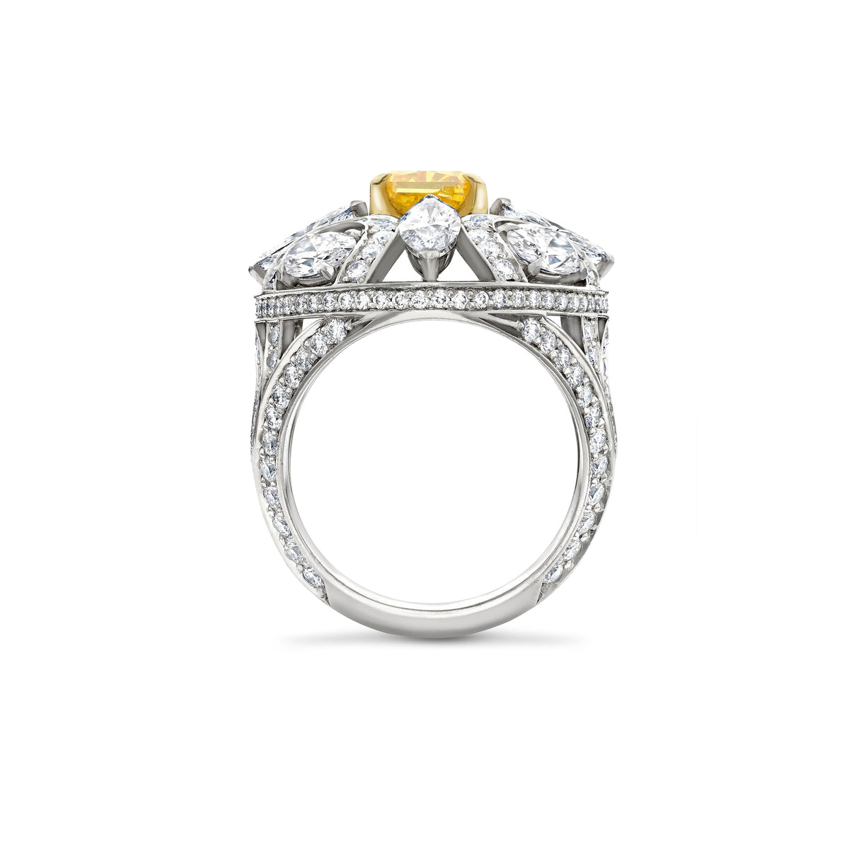 Scroll Radiant Cut Yellow Diamond Platinum Ring