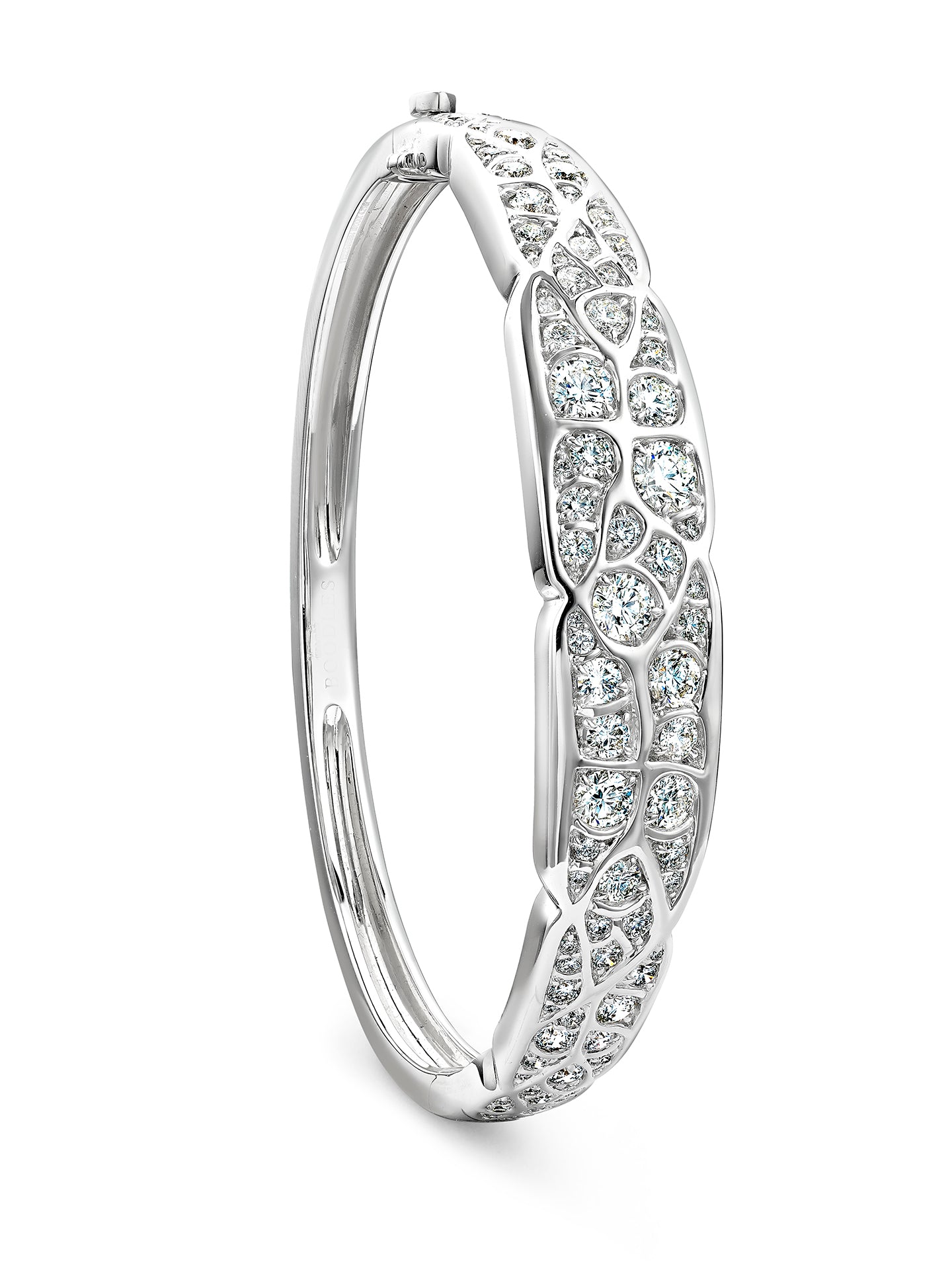 A St. Tropez design bangle set with brilliant cut diamonds in platinum. The total weight of the diamonds is 4.21 carats. By Boodles.