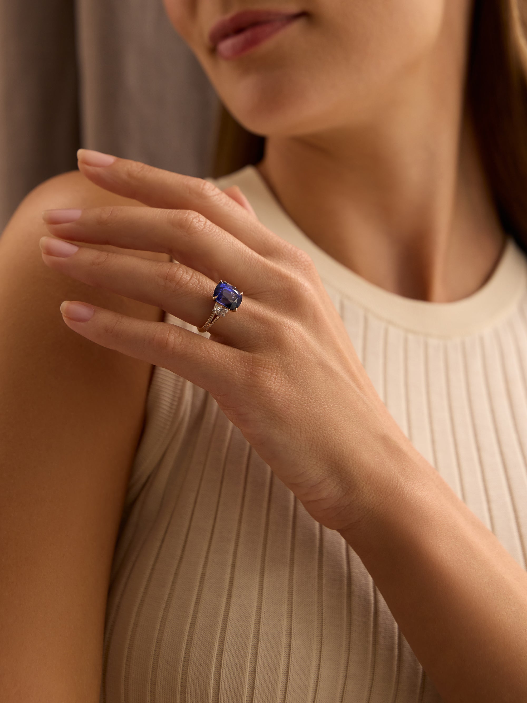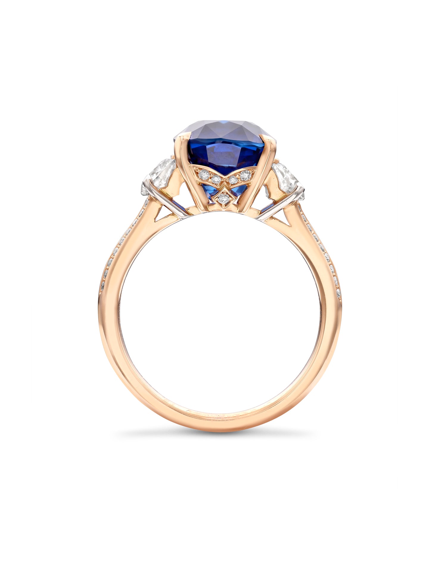 Trilogy Split Shoulder Sapphire and Diamond Rose Gold Ring