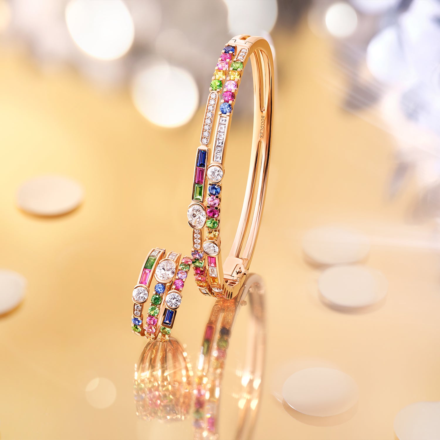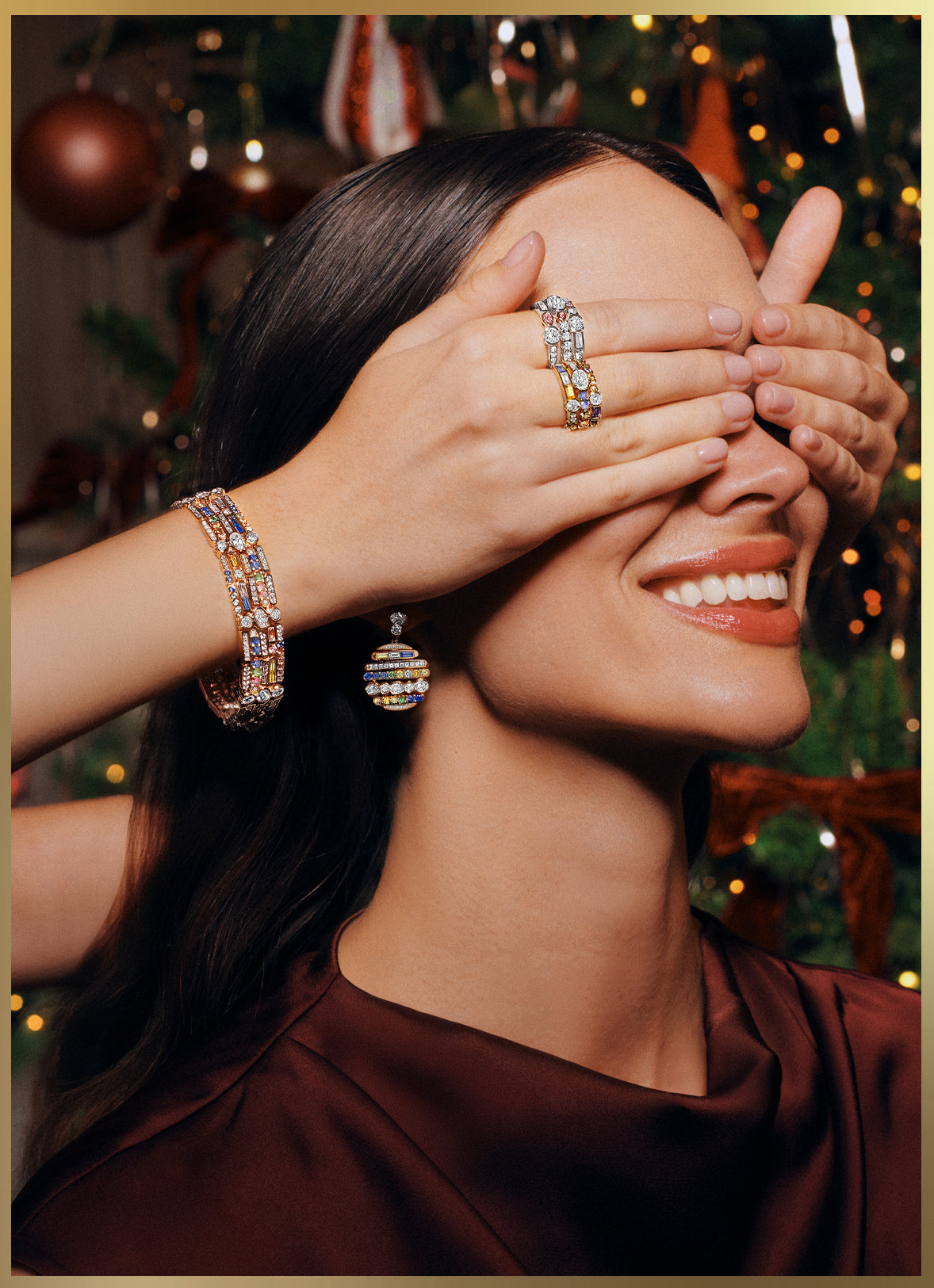 Our Play of Light collection features multicoloured gemstones set in pink gold and perfectly embodies the festive magic. Pair it with pieces from our coloured BEACH and Monaco collections for the ultimate festive frosting.