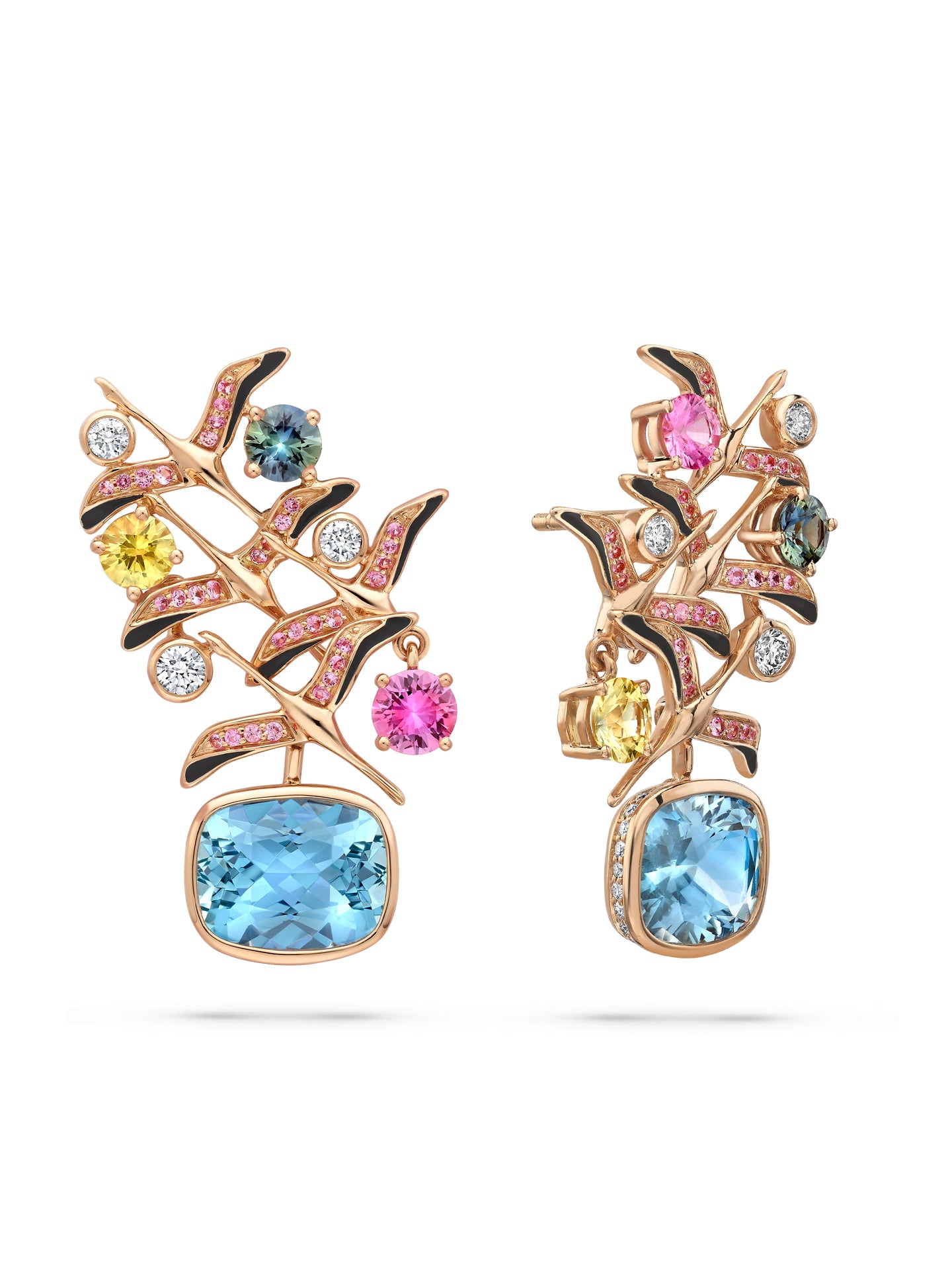 Africa Flamingo Lake Nakuru Aquamarine Rose Gold Earrings