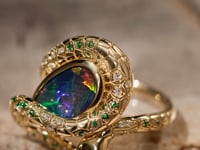 Africa Green Mamba Black Opal Diamond Yellow Gold Ring