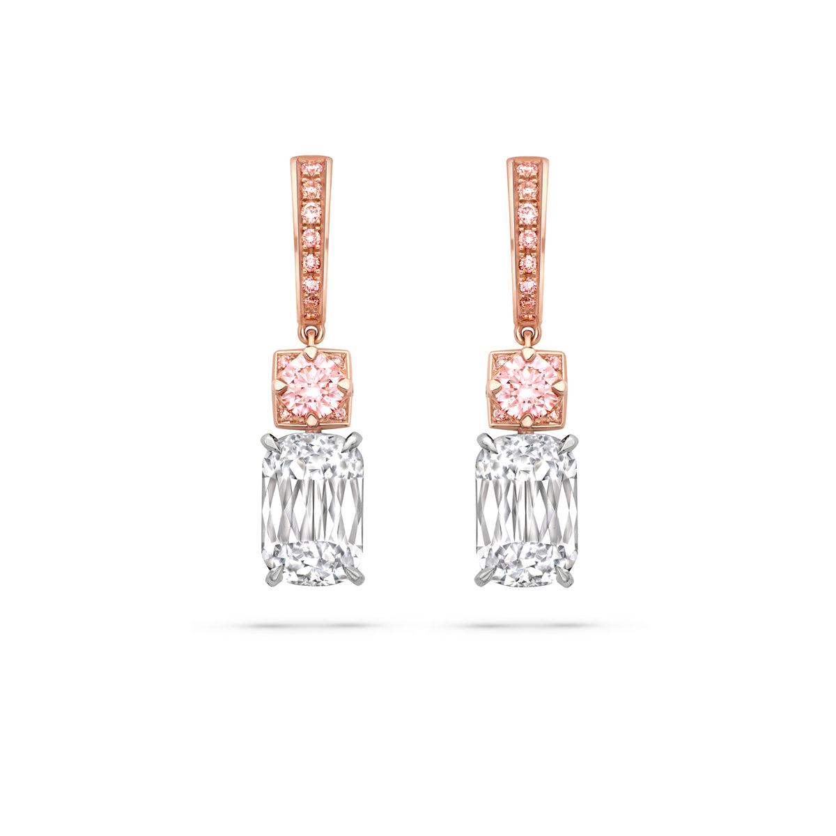 Ashoka and Brilliant Pink Diamond Rose Gold Drop Earrings