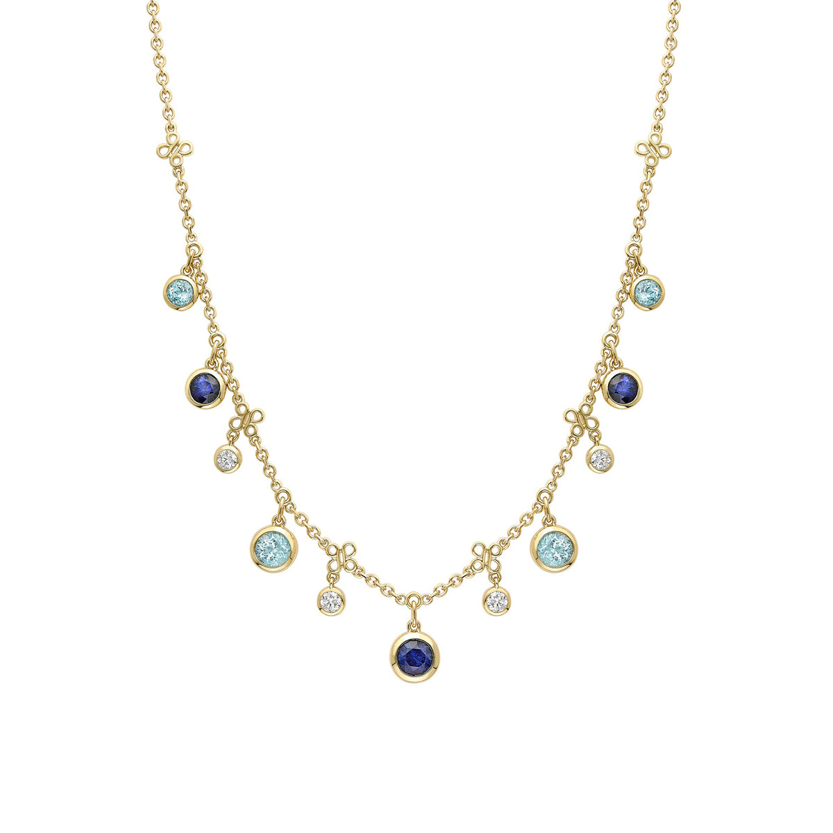 Beach Sapphire and Aquamarine Yellow Gold Necklace