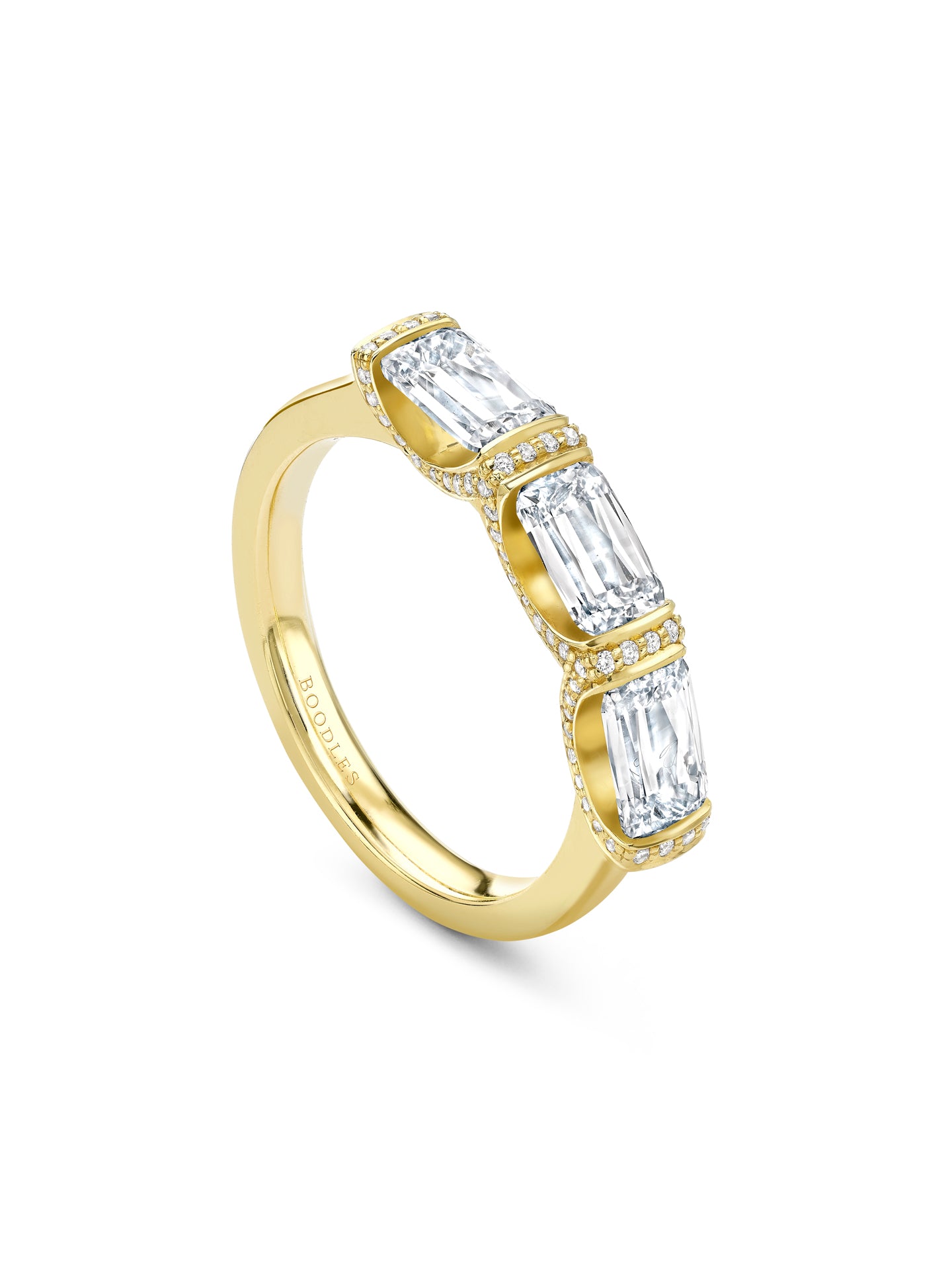 Ashoka Three Stone Diamond Yellow Gold Eternity Ring