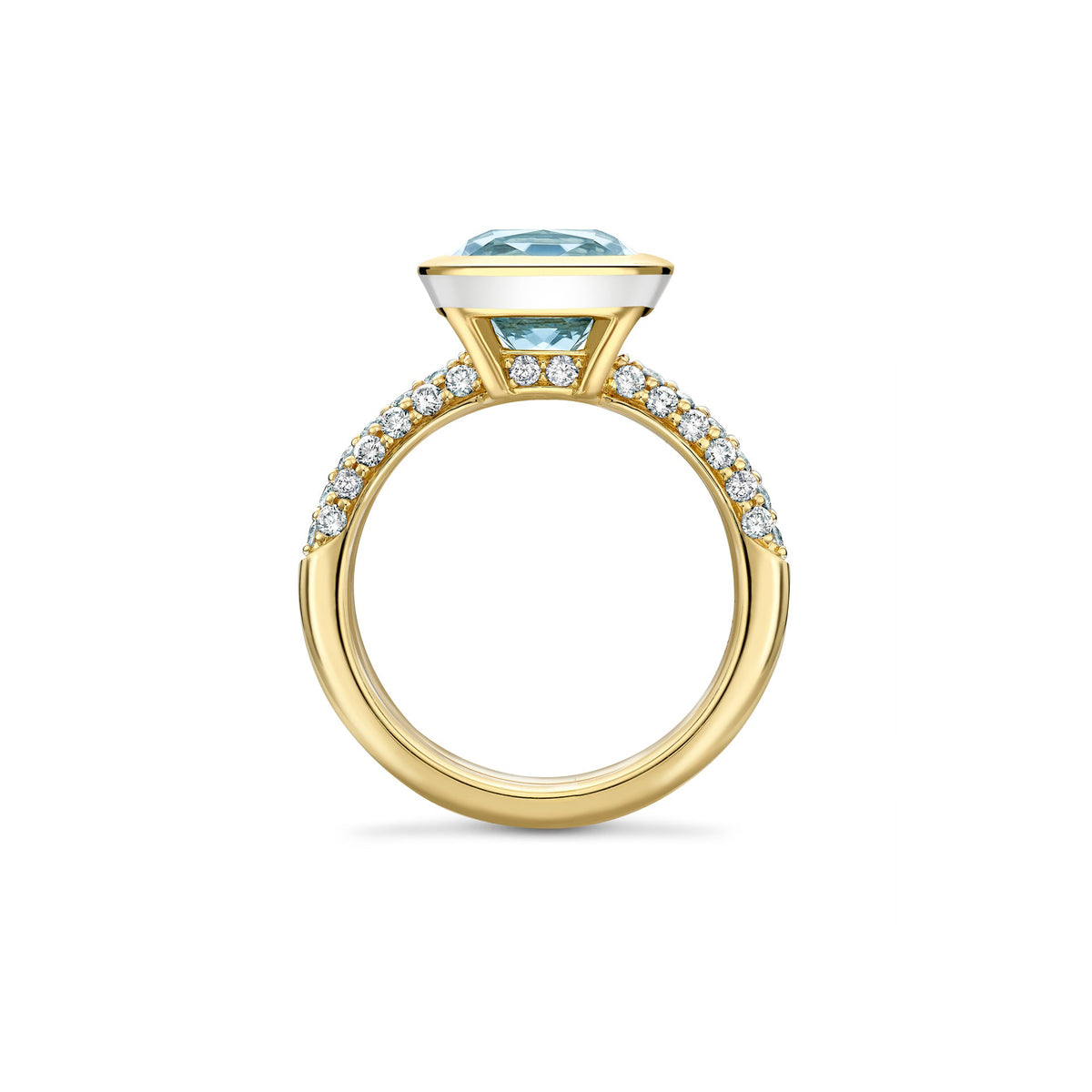 Florentine Dolce Vita Cushion Aquamarine French Yellow Gold Ring