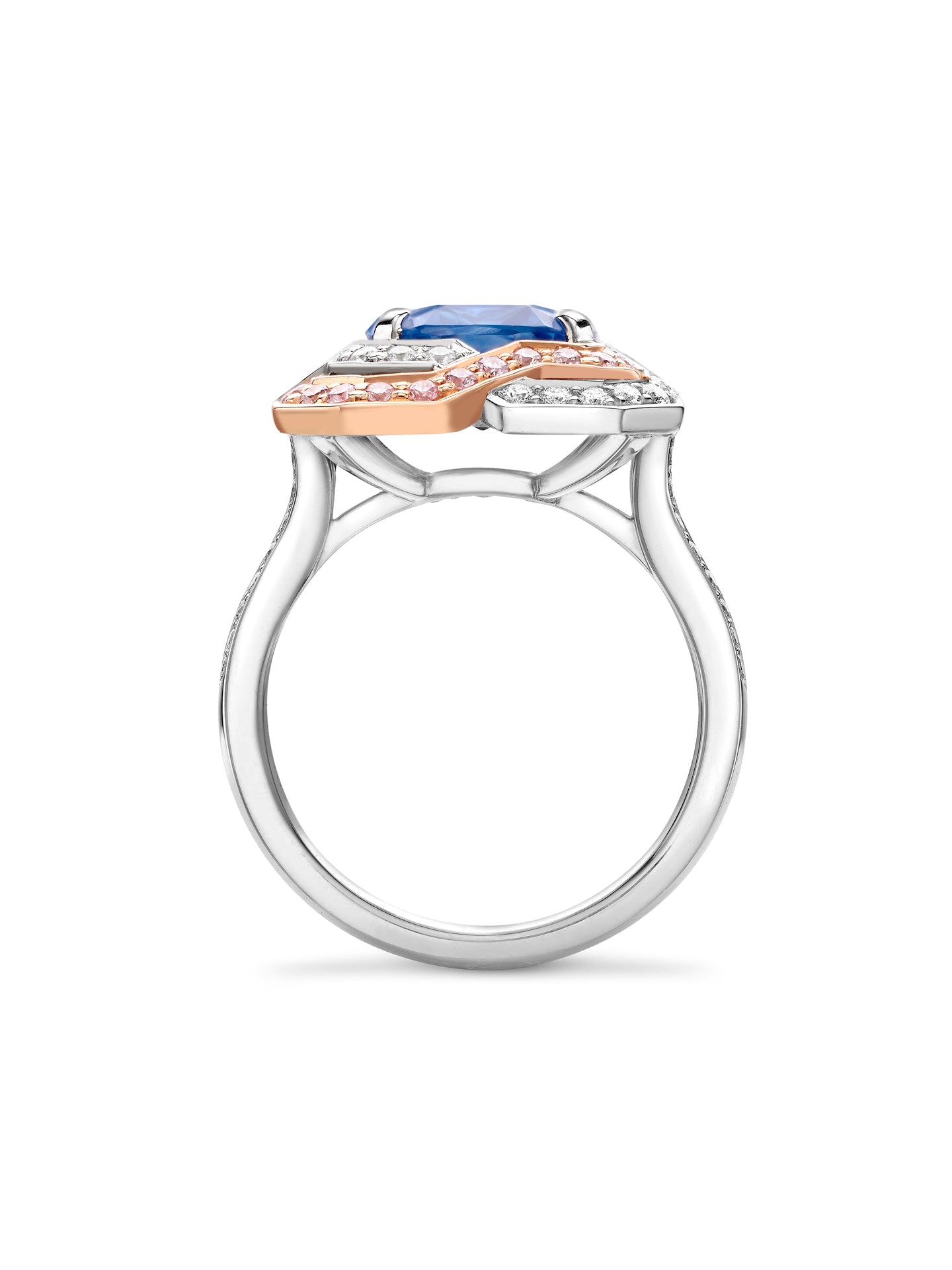 Pavilion Sapphire and Pink Diamond Platinum Ring