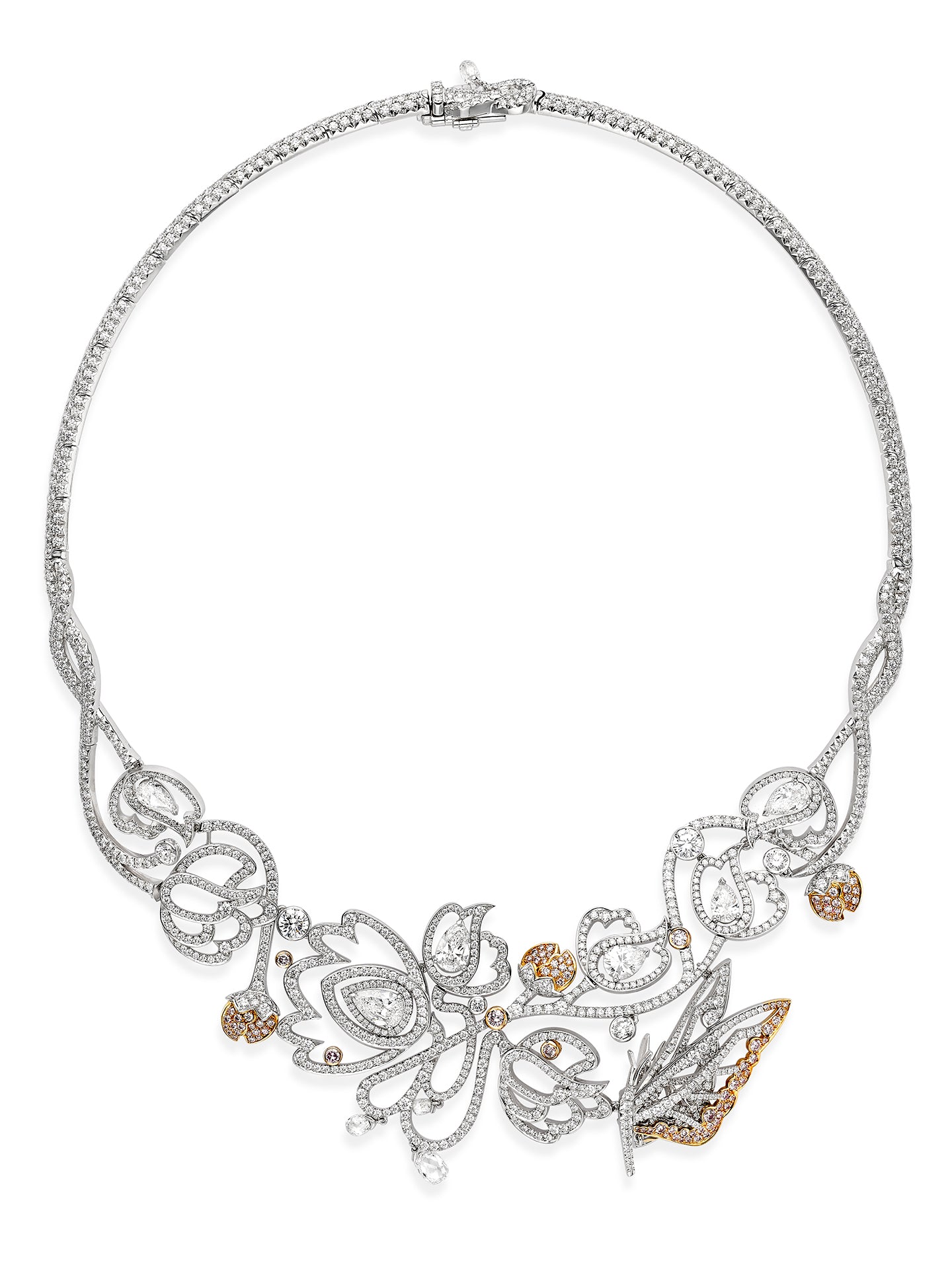 Peony Pink and White Diamond Platinum Necklace