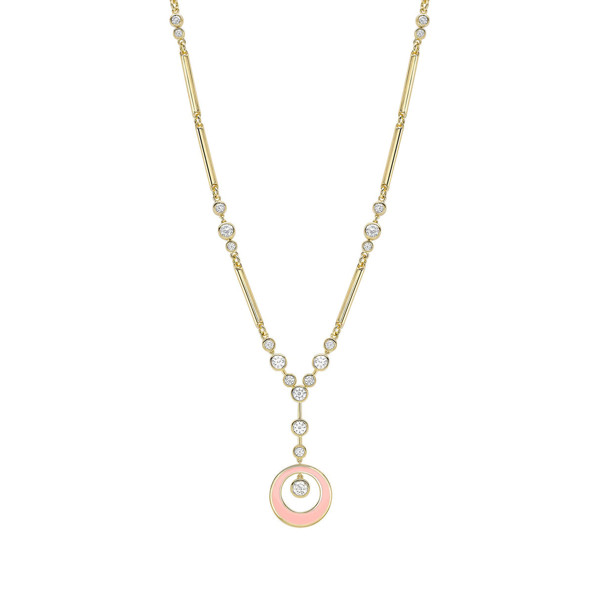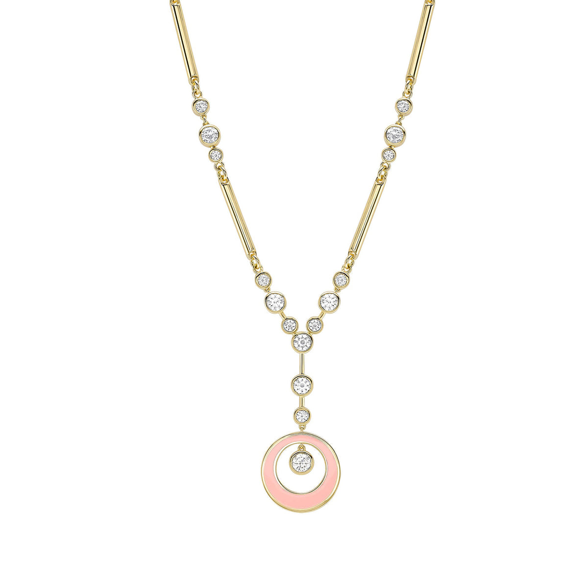 Raindance Diamond Pink Enamel Yellow Gold Pendant