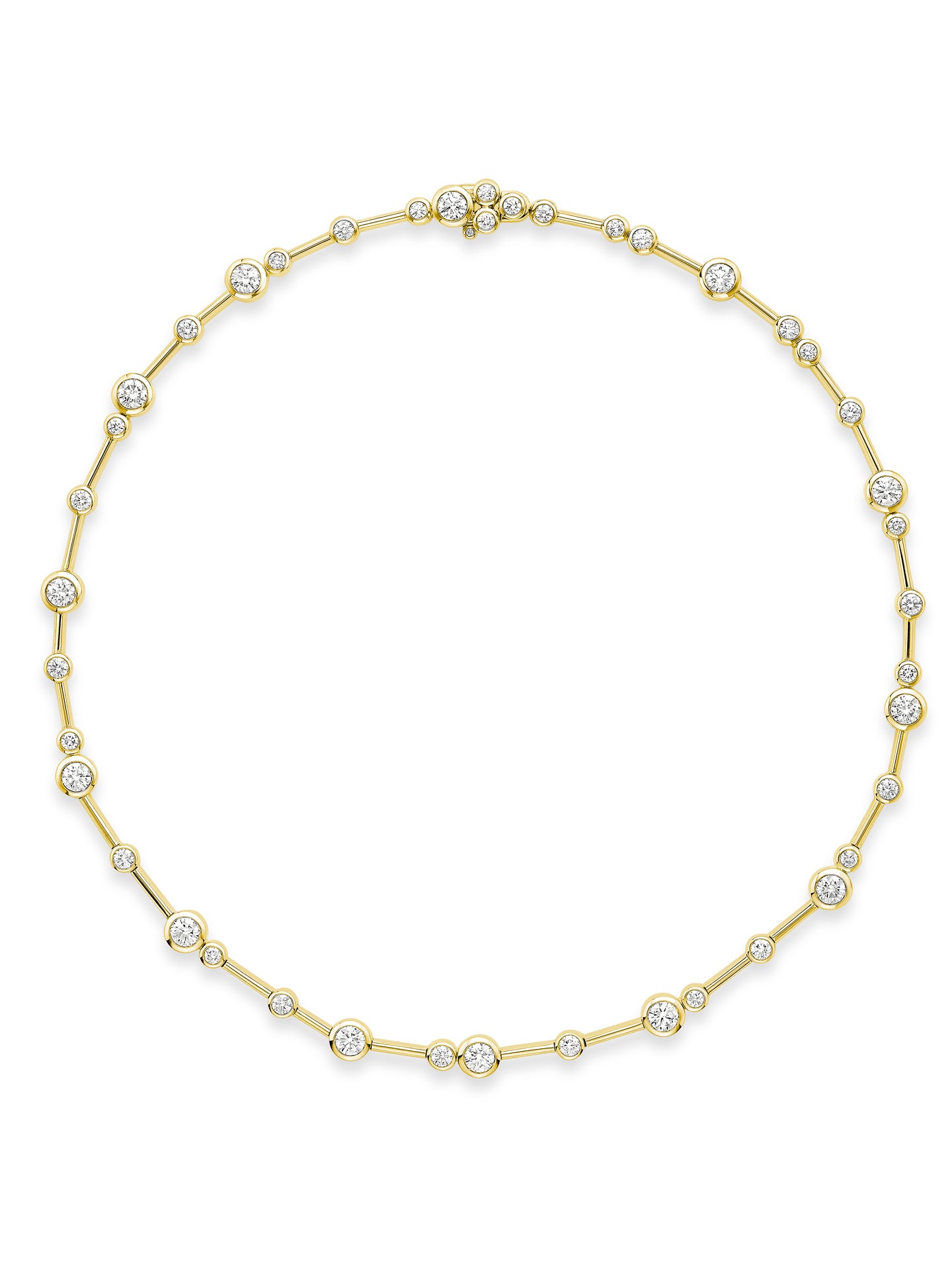 A Raindance design necklace set with brilliant cut diamonds in 18 carat Single Mine Origin yellow gold. The total weight of the 43 diamonds is 6.31 carats. By Boodles.