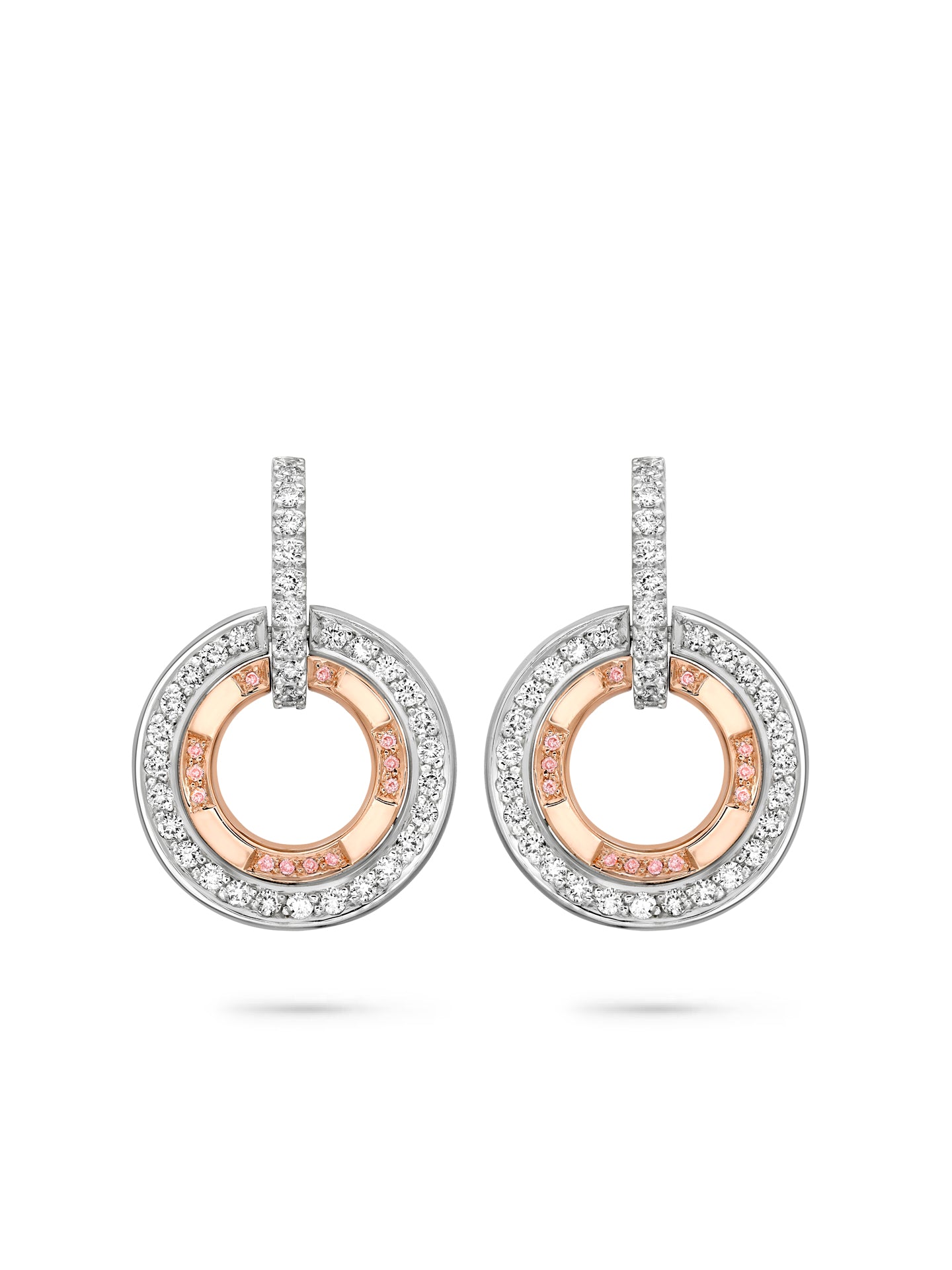 Roulette Pink Diamond Rose Gold and Platinum Earrings
